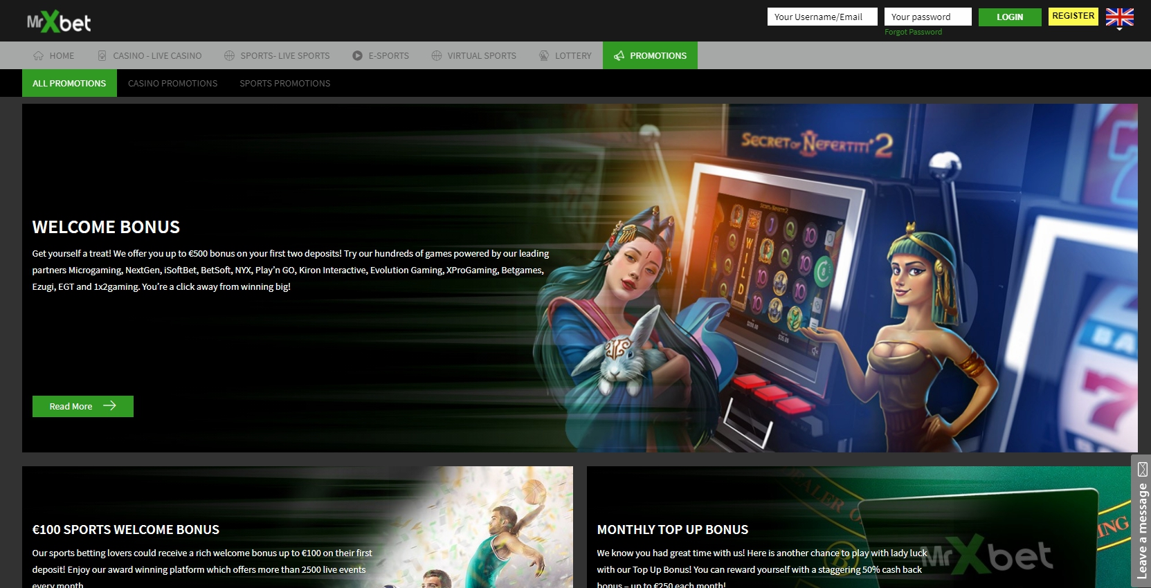 Chez Mr Bet, nous proposons d’excellentes variantes des meilleurs jeux de casino : machines à sous, croupiers en direct, blackjack, vidéo poker, poker en ligne, roulette en direct, baccarat, keno, cartes à gratter et bingo.